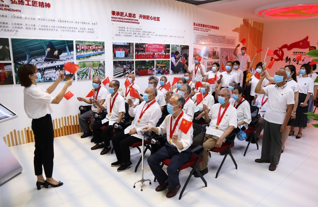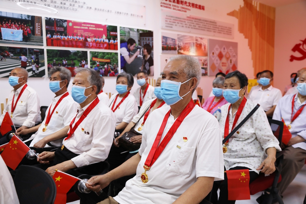 7月1日上午8时,庆祝中国共产党成立100周年大会在北京天安门广场隆重举行。泸州市江阳区三线建设老党员和茜草街道干部群众分别在匠心文化传承馆、鹰翔苑“物业+养老”日间照料中心收听收看实况直播。