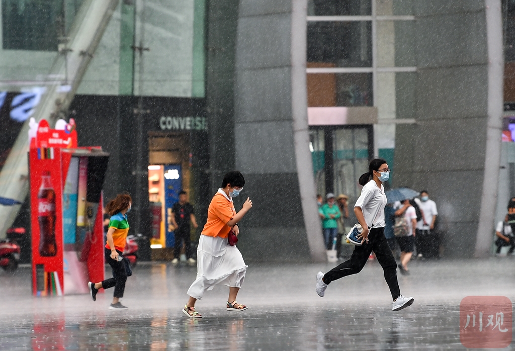 7月1日,成都市市区突然下起大雨,让许多出门没有带雨具的市民措手不及。许多赶路的市民只能冒雨跑步前行,形成了夏天独有的景象。据成都市气象台预报,1日下午到晚间还有一次降雨过程,请广大市民备好雨具。