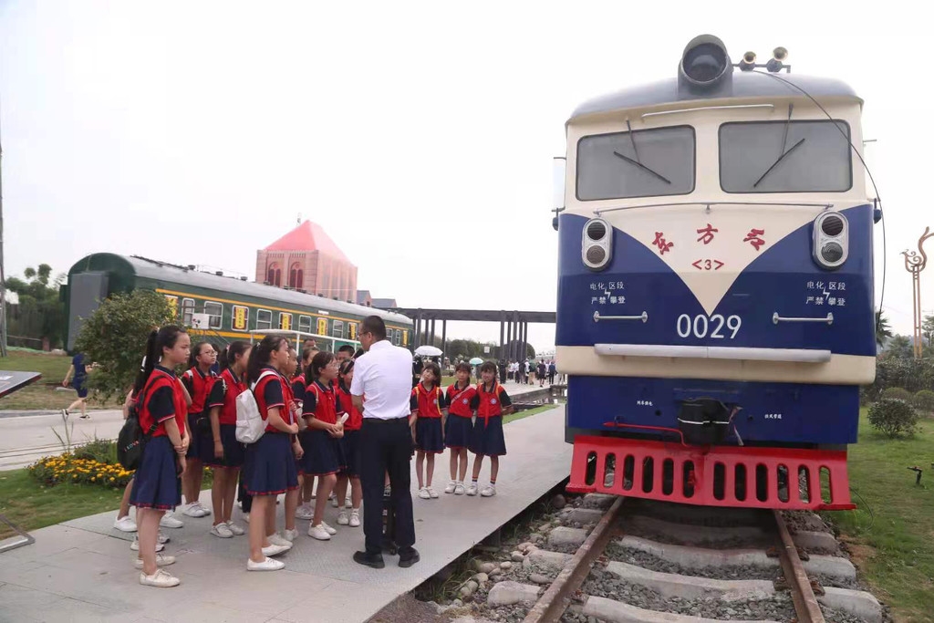 沿着火车一路前行,市民和游客除了可以了解到中国火车发展史,进行戏剧研学、绘画研学、火车研学等一系列的研学课程,还可以观赏到汉服秀、卡通戏剧服装秀、小丑表演、“活铜人”雕塑等互动演出,让大家有更多不同的研学旅行新体验。