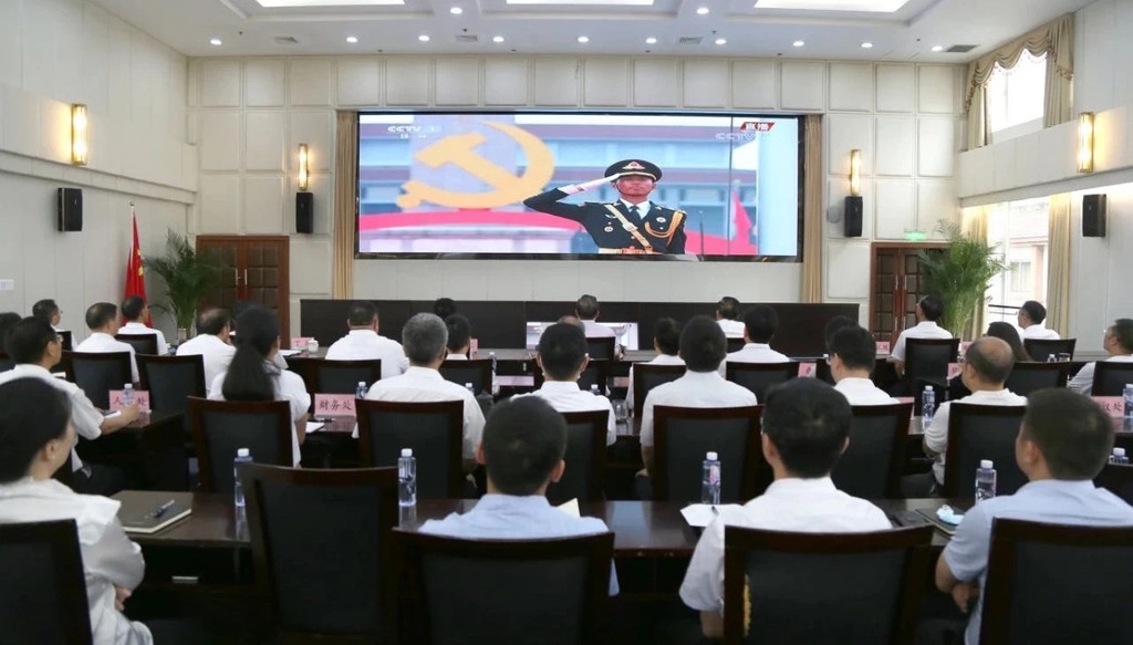 7月1日上午8时,庆祝中国共产党成立100周年大会在北京天安门广场隆重举行。省自然资源厅组织干部职工、离退休老干部党支部、临时党支部、流动党员等710余人进行了集中收看。
