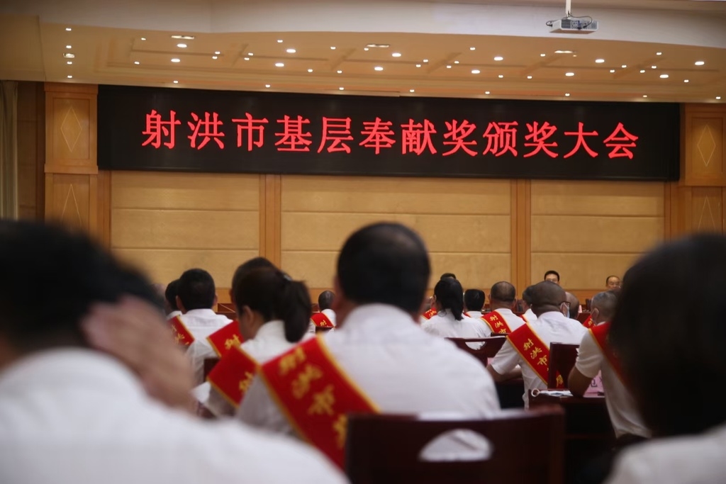 现场,当地141名基层干部获得“射洪市基层奉献奖”荣誉。他们来自不同的乡镇,经历各异,但有一个重要的共同点:长期奋战在基层一线,扎根基层、奉献基层、服务基层30年以上,用心用情为群众办实事。