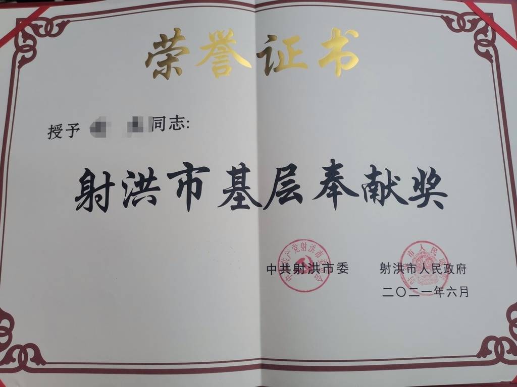 “设立基层奉献奖,一是关心关爱基层干部,让他们有更多的归属感和荣誉感。广大基层干部是党委政府联系群众的桥梁和纽带,几十年如一日坚守在平凡的工作岗位上,将党的惠农政策到千家万户,是群众身边的贴心人。二是进一步调动广大基层干部干事创业的积极性和创造性,激励大家扎根在广袤农村,为乡村振兴再立新功。”射洪市委组织部部长何德永说。