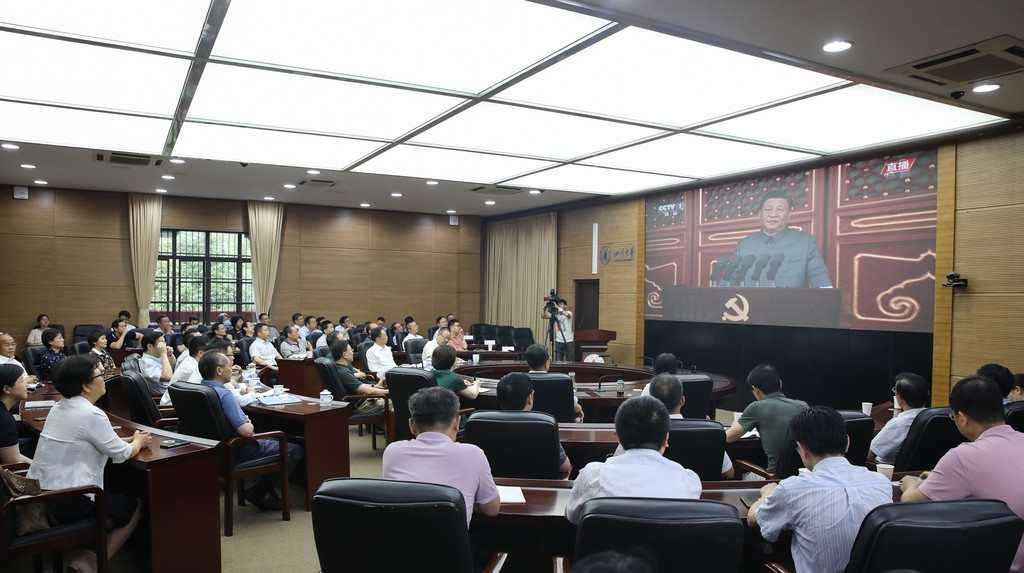 7月1日上午,庆祝中国共产党成立100周年大会在天安门广场隆重举行。四川大学组织师生集体收看大会直播。