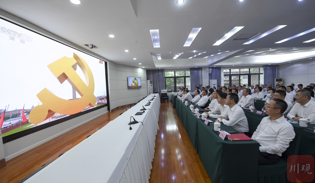 7月1日,南充市蓬安县领导干部集中观看庆祝中国共产党成立100周年大会直播盛况。