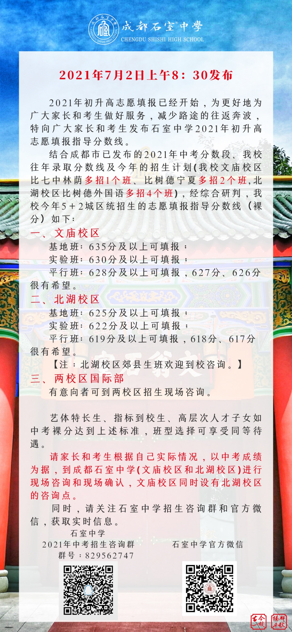 今天上午,成都市中考成绩出炉,石室中学发布了2021年中考志愿填报指南,快来看看!