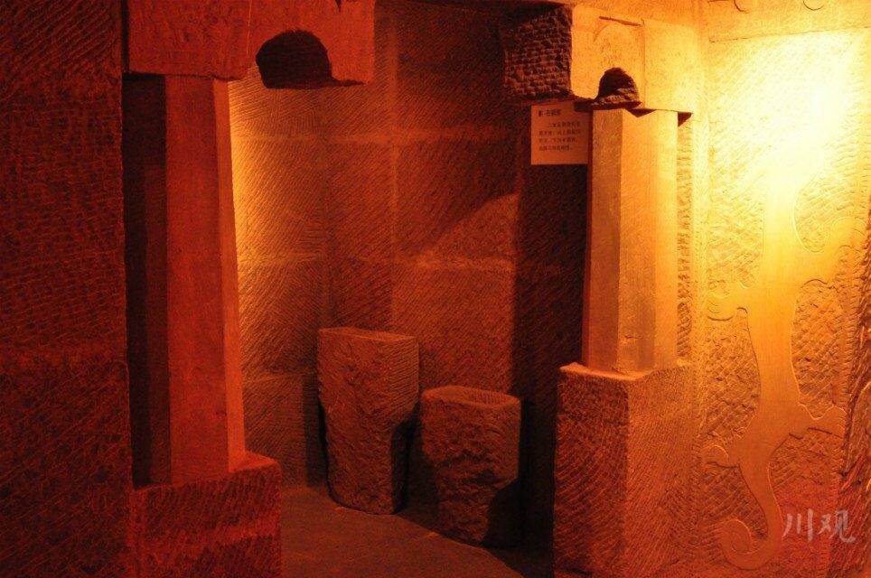 德阳市中江县玉江之畔,有一片“塔梁子崖墓群”。2002年,考古专家对其中的9座崖墓进行抢救性发掘,首次在崖墓中发现壁画和墨书榜题,并确认塔梁子3号墓是截至目前,长江流域及其以南地区发现时代最早的壁画墓。