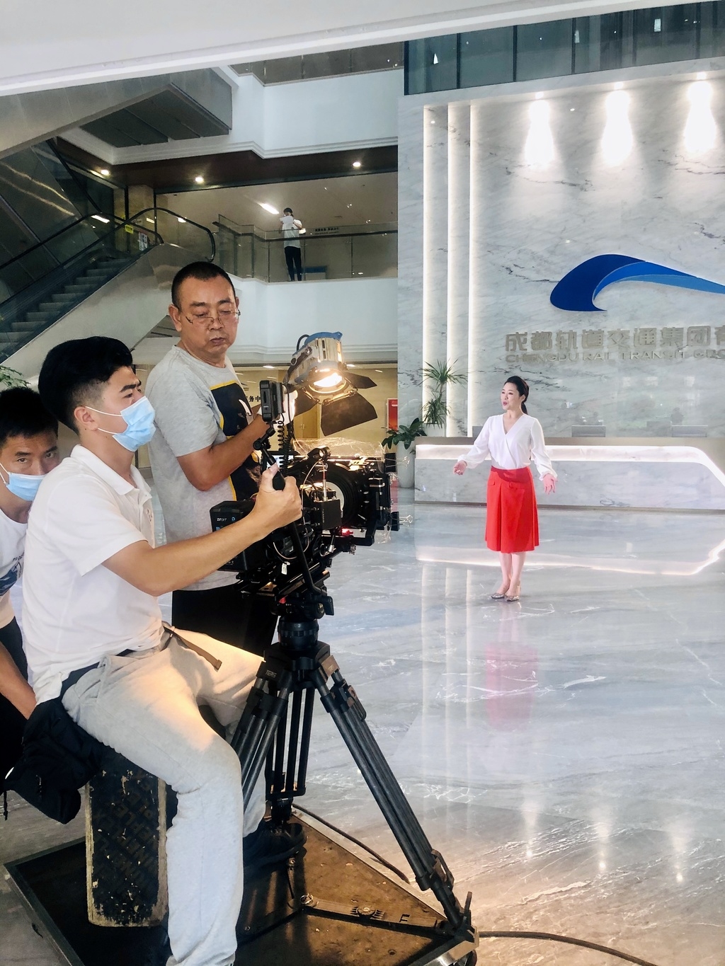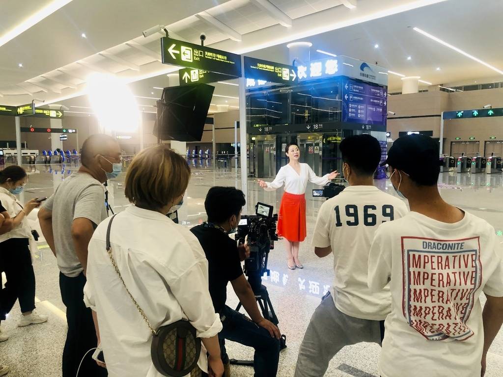 7月2日,在成都天府国际机场,在地铁站旁……金钟奖获得者、国家一级演员马薇在拍摄歌曲《你的光芒我的方向》MV,近期歌曲mv将在网络上线。