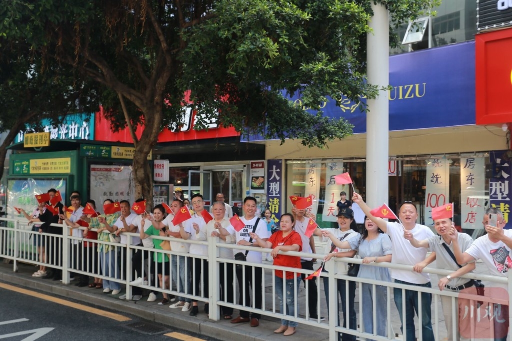 一路上,途径朝阳中路、金龙大道、永兴路等,闻讯赶来的群众夹道欢迎。
