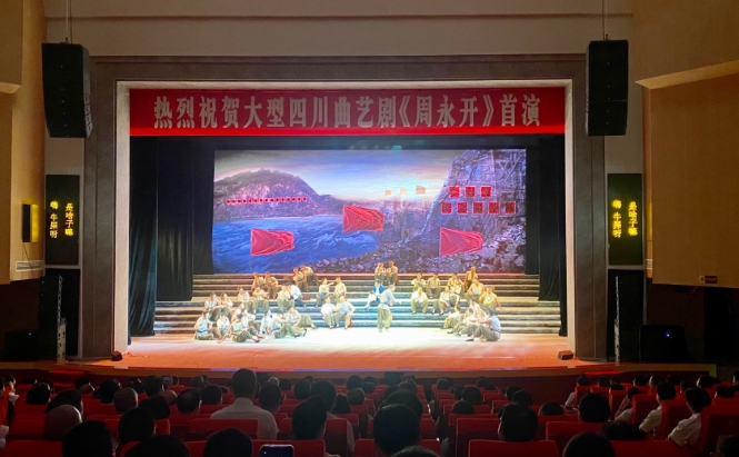 7月5日晚上7点半,大型四川曲艺剧《周永开》在巴州剧院正式首演。现场,周永开长子周南生代表父亲表达感谢,并预祝演出成功。