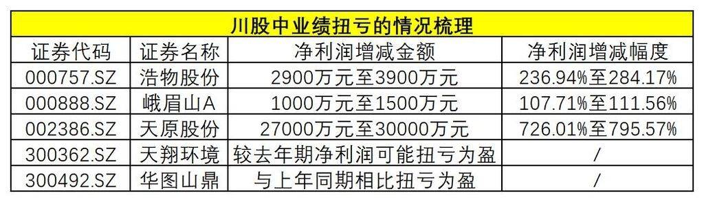与之相对的,共有5家上市川企“报忧”。其中1家预减,1家首亏,3家续亏。