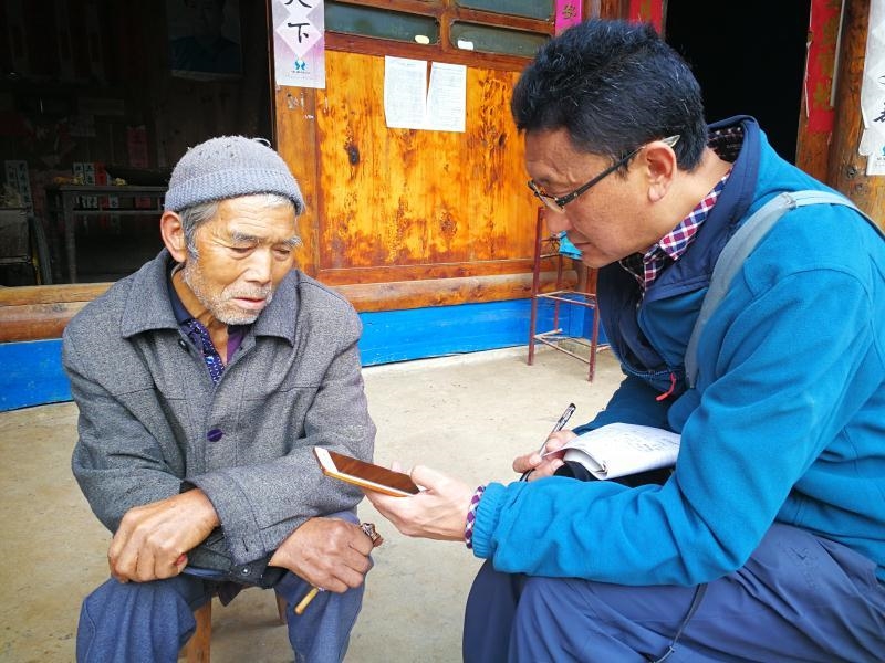 与羌区群众交流,搜集素材。阿坝州政协供图