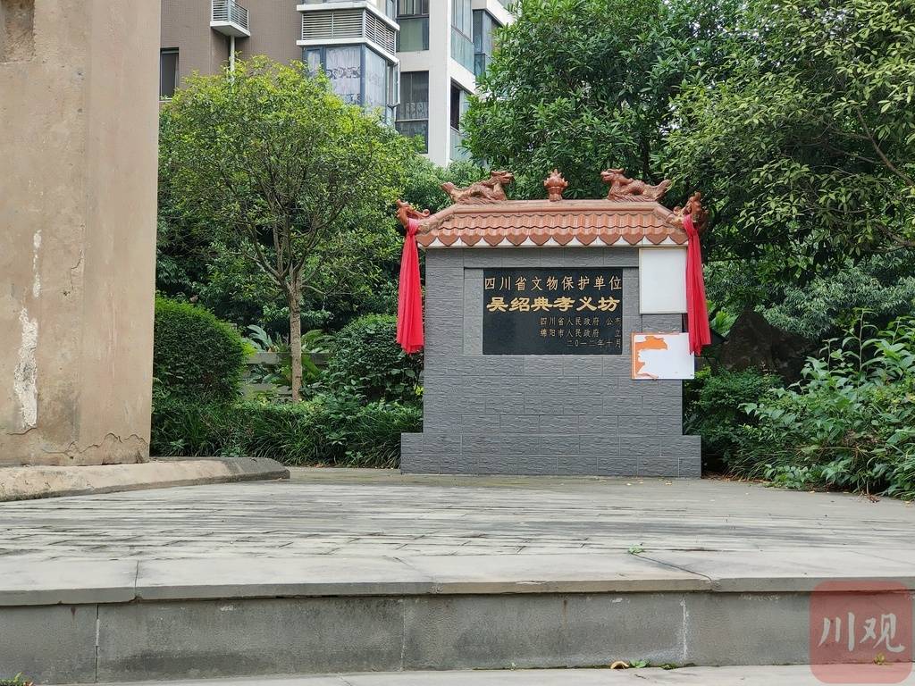 在绵阳高新区石桥铺附近的高楼中,有一座古朴的石牌坊,外侧修了围栏保护,在周边还形成一个小广场,经常有附近的居民在这里闲坐。