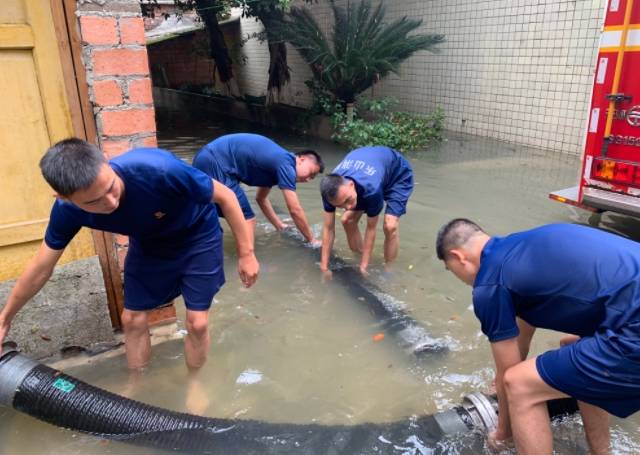 市中区消防救援大队百禄路消防救援站工作人员在干休所进行抽水作业