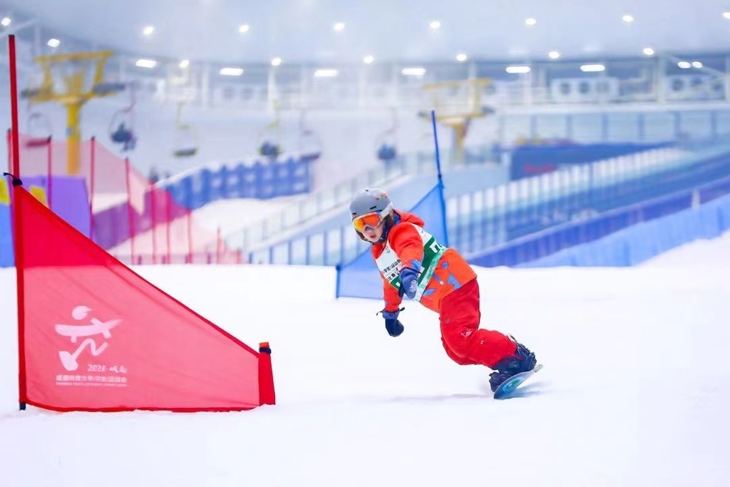暑假与冰雪相遇是一种怎样的体验?7月8日,由成都市体育局、成都市教育局主办的“爱成都·迎大运”2021年成都市青少年(学生)运动会滑雪比赛在都江堰市融创雪世界拉开帷幕,来自成都市13个区市县的14支代表队、133名运动员,参加了双板滑雪大回转、单板滑雪大回转两个项目的角逐,每项设置男、女高中组、初中组、小学甲组和小学乙组8个组别。本次比赛也是一次选拔赛,优秀选手将有资格代表成都市参加明年的省运会。