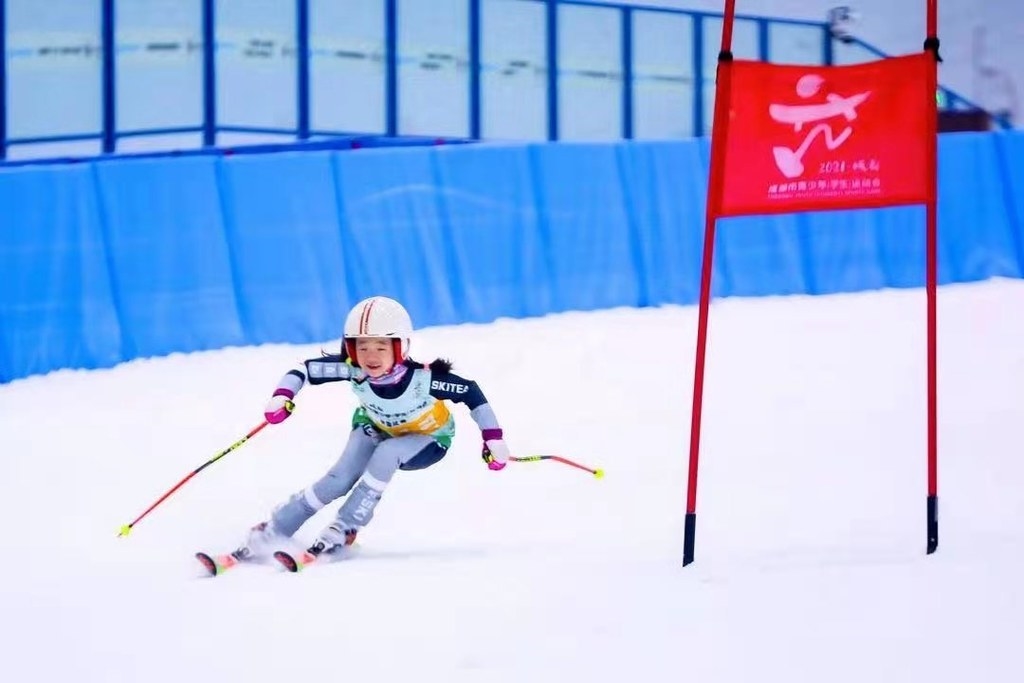 滑雪作为新兴时尚项目,逐渐受到广大青少年的喜爱,近年来,成都市不断丰富的冰雪运动赛事体系,让越来越多的青少年参与到冰雪运动中。