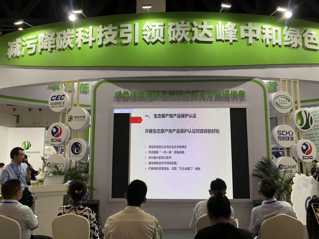 在四川省绿色发展促进会的展台前,成都海关技术中心、四川宏展致远环保科技有限公司、四川省冶勘设计集团有限公司等成员企业代表轮流“路演”,现场“抢话筒”作推介,引来不少参会代表驻足。