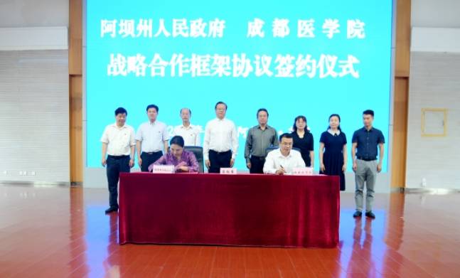 7月9日,阿坝藏族羌族自治州人民政府与成都医学院牵手,签订《关于促进区域医疗卫生事业发展战略合作框架协议》。双方将重点在人才培养、医疗、科研、养老与老年健康等五个方面开展合作,破解阿坝州医疗卫生人才短缺和技术相对落后等问题,促进全州医疗卫生水平稳步提升。