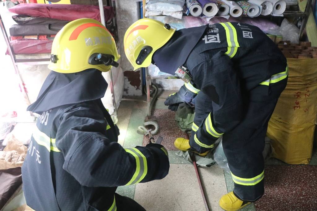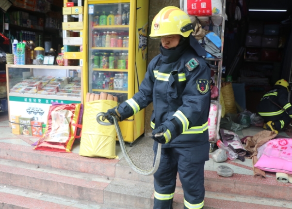 到场后,在报警人的指引下,指战员来到商铺蛇盘踞的地方,经侦查发现:大蛇藏在商铺的物品堆里,不时发出“嘶嘶嘶”的声音。见此情形,指挥员立即指派两名指战员穿戴好个人防护装备,搬开物品,利用捕蛇器进行抓捕,其余人员现场进行协助。经过约10分钟,成功将大蛇抓住,并装进事先准备好的蛇皮袋中,经确认此蛇为菜花蛇,在归队途中带将其安全放回大自然。