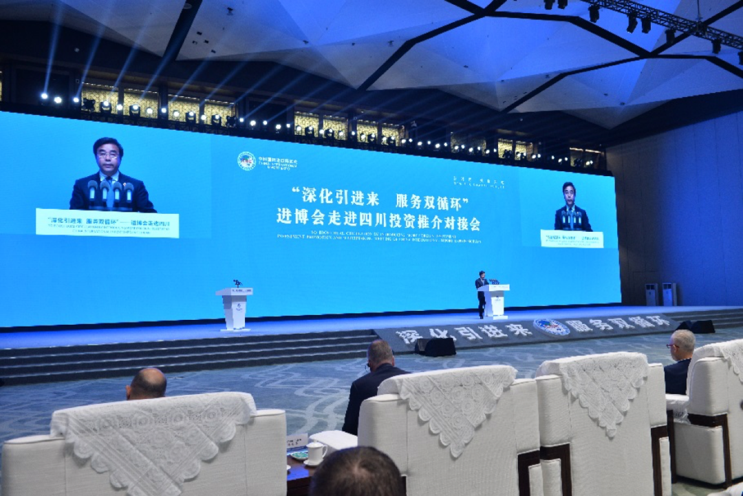 7月8日,以“深化引进来 服务双循环”为主题的进博会走进四川投资推介对接会在成都举行。活动由商务部、四川省人民政府共同主办,中国国际进口博览局、四川省商务厅和四川省经济合作局共同承办,进博会唯一战略合作伙伴中国银行独家支持。