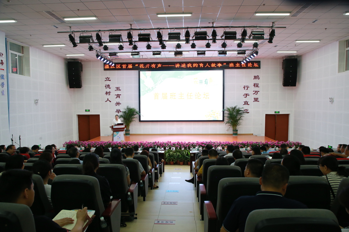 2021年7月9日,成都市温江区首届“花开有声——讲述我的育人故事”首届班主任论坛在温江区鹏程小学召开,区教育局局领导、相关科室(直属单位)负责人、全区中小学校长、德育干部、班主任代表共计260余人参加。