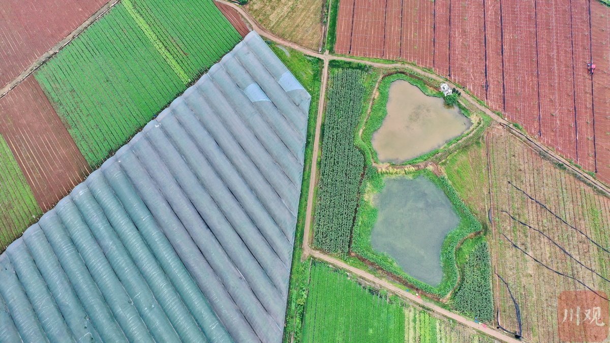 俯瞰四川省南充市嘉陵区一立镇蒋氏祠村蔬菜基地