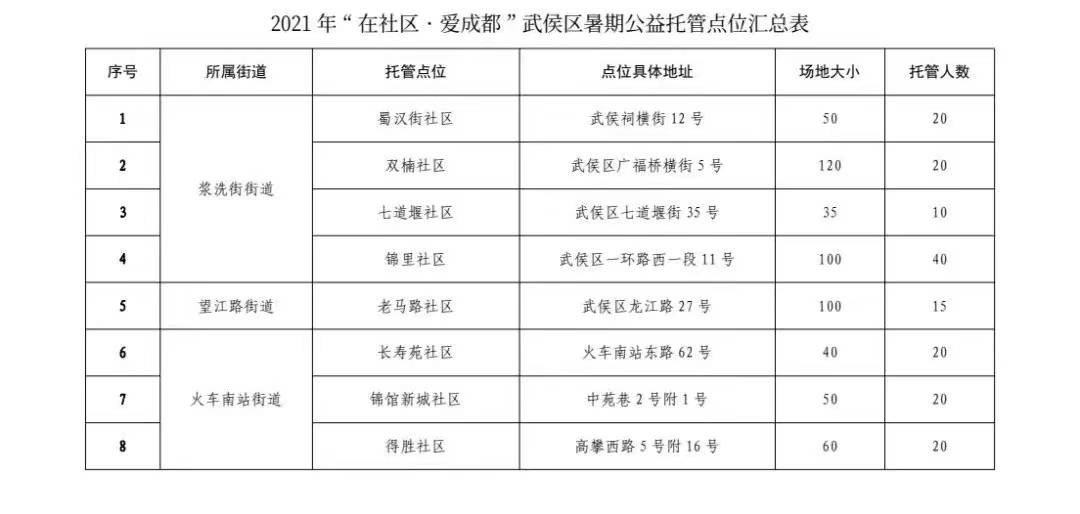 7月12日至8月6日,全区10个街道的30个社区(见图)将为辖区暑假期间需要代为看护6~12岁的儿童青少年提供公益免费托管服务。