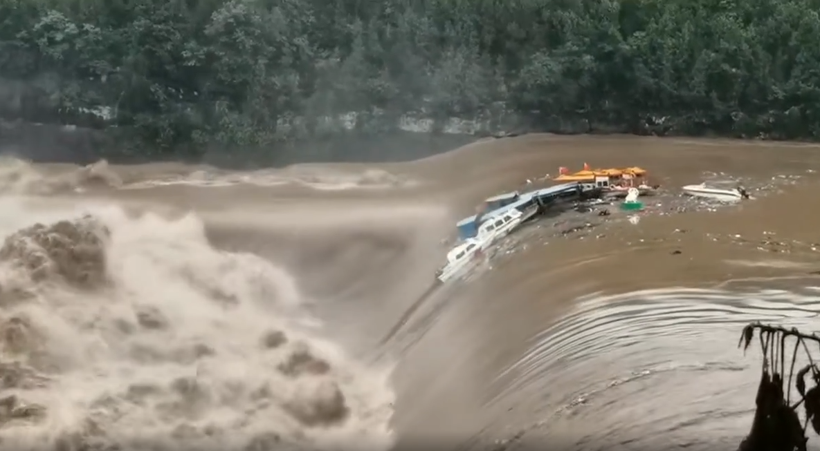 “哦豁,莫得了”,7月10日下午4时许,巴中市巴州区三江电站大坝附近,多艘船只和快艇,顺着巨大洪流,坠入下游波涛汹涌的瀑布中,瞬间化为乌有,场面堪比电影。