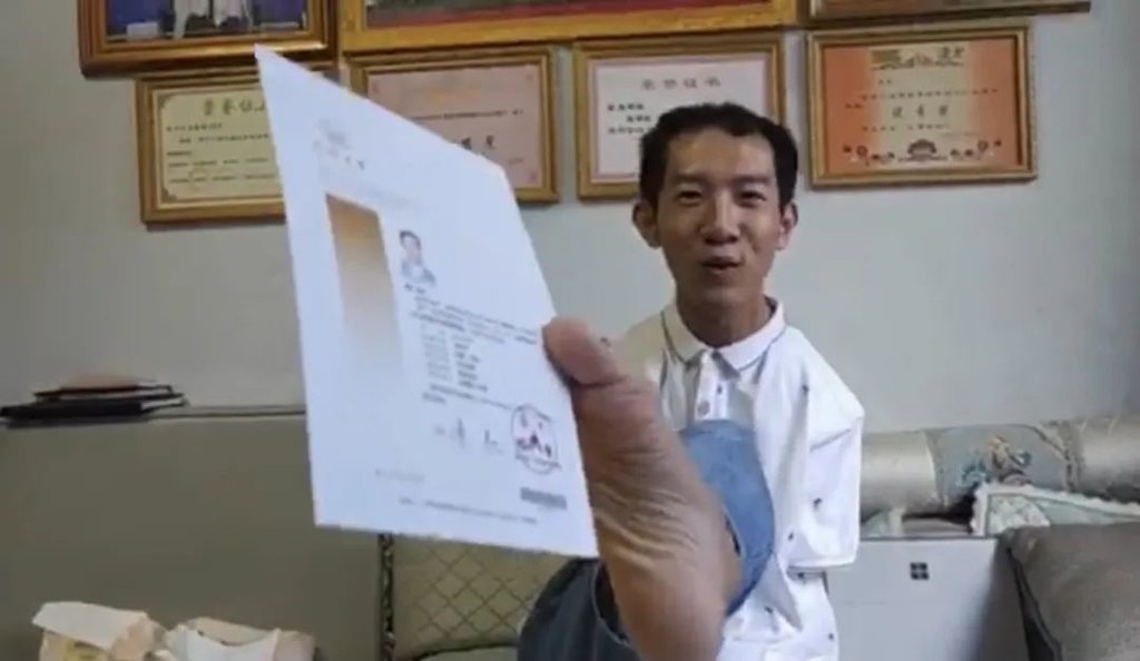 今年3月份,彭超参加同济大学的考研复试,一张用脚考试的照片刷屏网络。