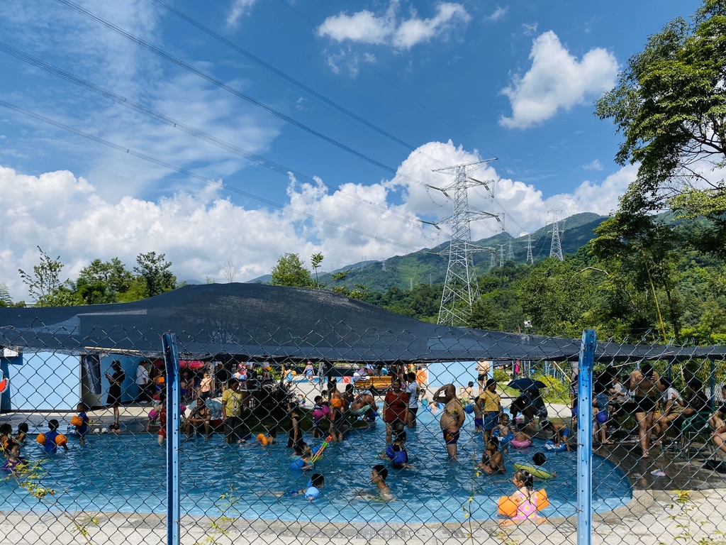 7月10日下午,禾茂田园内的游泳池,水波荡漾,清澈透明。游客们一头扎进泳池,夏日的暑热消了一大半。不远处,游客骑着脚踏车在乡间小路悠然前行,坐着小火车感受向往已久的田园风光。