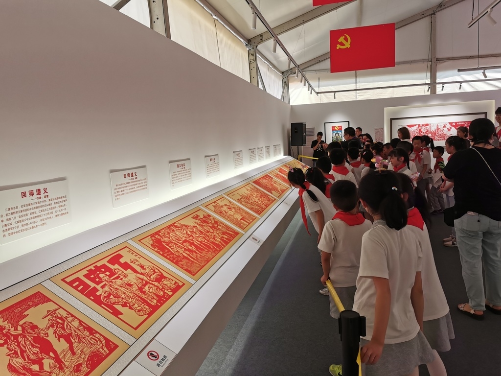 7月12日,成都市锦江区三圣街道喜树路社区“喜乐荟”广场,锦江区庆祝建党100周年大型剪纸艺术展览吸引了不少市民驻足。该社区积极发动剪纸艺术家和剪纸爱好者,将党史元素融入创作,原创百件剪纸展现党史故事,按时间、建设成就、先进人物重大事件“三大”主线布展,并设置现场剪纸等互动体验区,发动党员群众与艺术家互动交流。