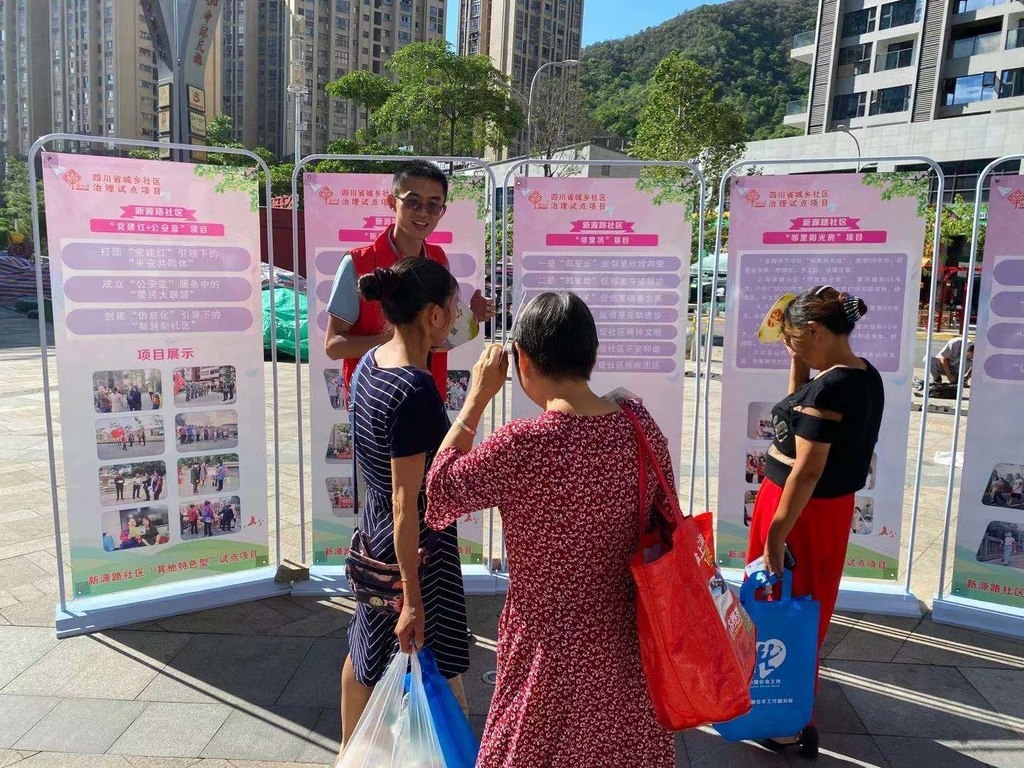 “叔叔、阿姨,有空了可以到社区参加插花培训,还可以来学习其他技能,都是免费的……”7月12号,攀枝花市首批四川省城乡社区治理试点示范项目举办成果汇报路演会现场,攀枝花市东区新源路社区主任白诚云向过往居民介绍该社区承接的特色试点项目,不少居民循声围拢过来。