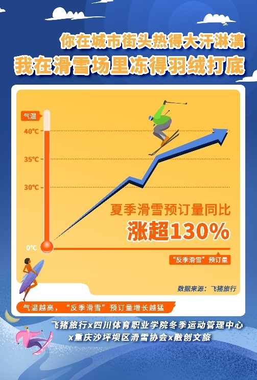 7月12日,飞猪联合四川体育职业学院冬季运动管理中心、重庆沙坪坝区滑雪协会发布2021“反季滑雪”新趋势:今年夏天,“反季滑雪”预订量增长越猛。近1个月,飞猪平台上夏季滑雪相关商品预订量同比大涨超130%。火炉城市重庆“反季滑雪”趋势最为显著,预订量同比涨超550%领跑全国。