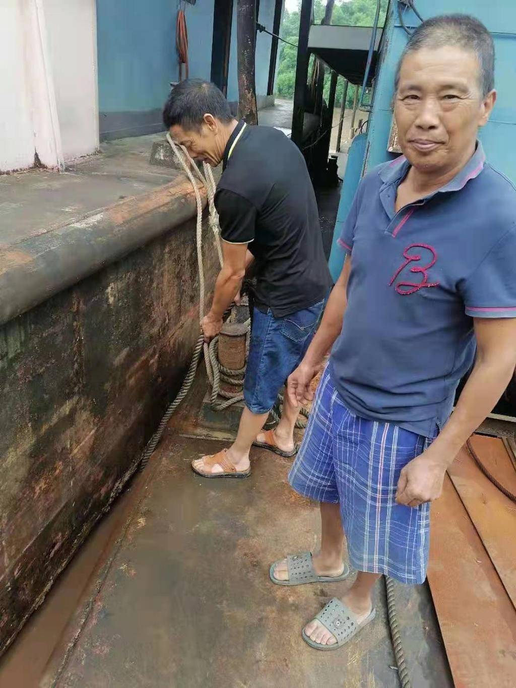 7月12日11点,广安市前锋区红旗码头,“川广安拖1011”船上,从鬼门关走了一遭的达州渠县三汇镇人程正付,一再向两位广安恩人——程延周、蒋华明道谢。