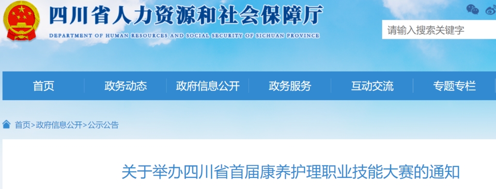 党的十九大提出“建设知识型、技能型、创新型劳动者大军,弘扬劳模精神和工匠精神,营造劳动光荣的社会风尚和精益求精的敬业风气”,为发挥职业技能竞赛在技能人才培养、选拔和激励等方面的重要作用,打造享誉全国的“天府工匠”,培养规模宏大的“技能川军”,四川省人力资源和社会保障厅、四川省民政厅、四川省卫生健康委员会、四川省中医药局、四川省妇女联合会决定联合举办2021年四川技能大赛—首届康养护理职业技能大赛。