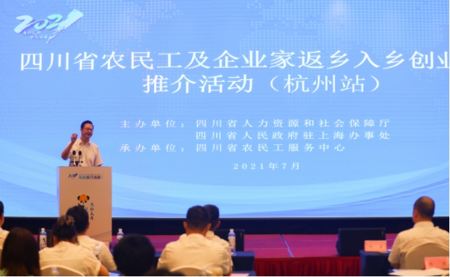 7月13日,四川省2021年农民工及企业家返乡入乡创业项目推介活动(杭州站)在浙江省杭州市举办。此次活动由省人社厅、省政府驻上海办事处、省农民工服务中心主办,现场集中推介项目8个,引资额达21.6亿元。
