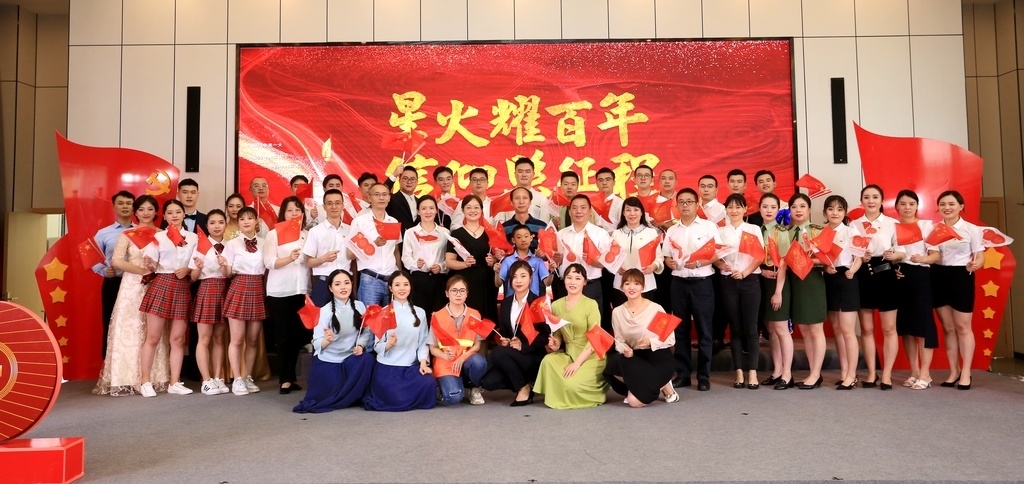 诵读活动结束,成都市交通建设工会、成都建工集团二公司工会、中冶建工集团四川公司工会等负责人与现场观众共同高唱《没有共产党就没有新中国》,将现场气氛推向高潮。
