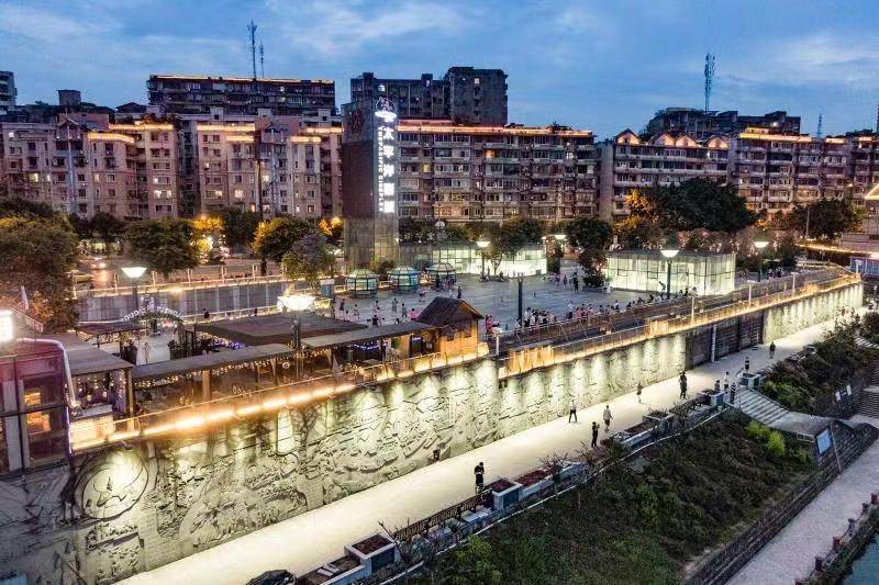 吃饱喝足,到内江市中区六段锦广场,此处濒沱水之滨,江水蜿蜒东来,亲水步道上走一走,夜景很有味道。目前,内江正在大力提升改造六段锦街区,到2022年底,计划将这里打造成以“内江外滩”为主题的一条“旺而不乱、杂而有序”的夜间消费步行街和滨水休闲商业标杆。