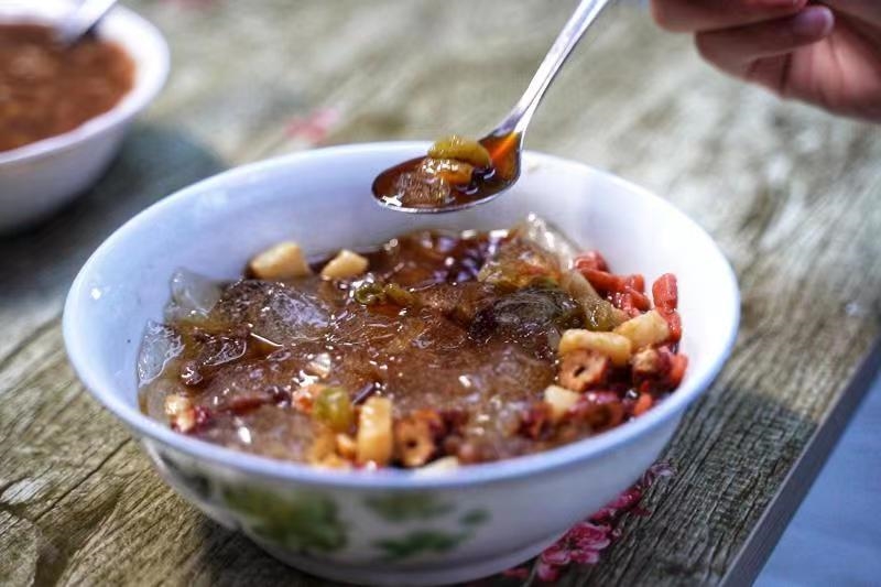 时间沉淀、口碑相传让小吃店越来越有名气。软软糯糯的绿豆沙、甜而不腻的红糖冰粉、香糯可口的肉汤圆、酸辣甜兼具的凉面……成了食客们店内必点的小吃。