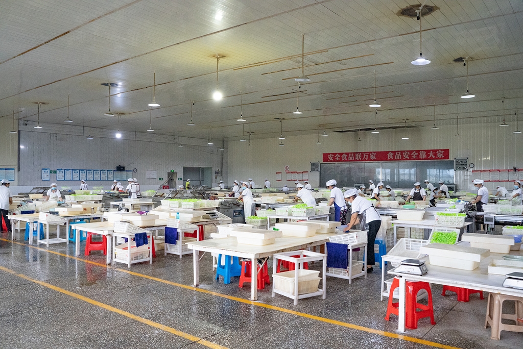 7月8日,内江市市中区凌家镇,内自合作园区食品产业园四川竹鑫兵食品有限公司厂房内,工人正在忙碌,清洗、筛选……一道道工序下来,麻辣竹笋、土豆片、金针菇、藕片等熟食休闲食品等制成装袋,即将运出园区。