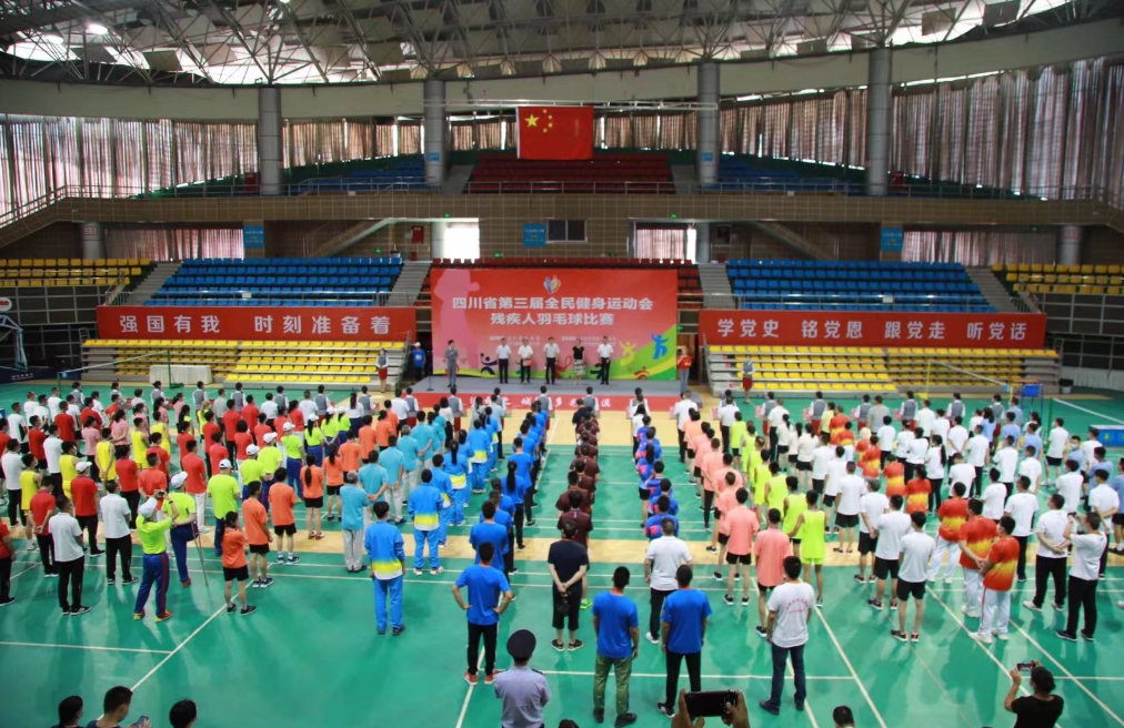 7月14日上午,由四川省体育局、四川省残疾人联合会主办,宜宾市残疾人联合会、宜宾市南溪区人民政府承办的四川省第三届全民健身运动会残疾人田径、羽毛球项目在宜宾市南溪区文体中心体育馆举行开赛仪式。