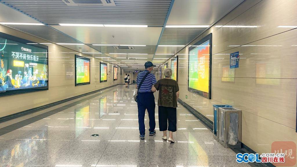 7月14日下午,四川在线记者在成都地铁市一医院站看到,一位老爷爷正牵着一位老奶奶缓缓地下楼梯,老爷爷走一步停一下,小心翼翼地扶着老奶奶,而老奶奶也紧紧挽着老伴的手,满满的爱意。