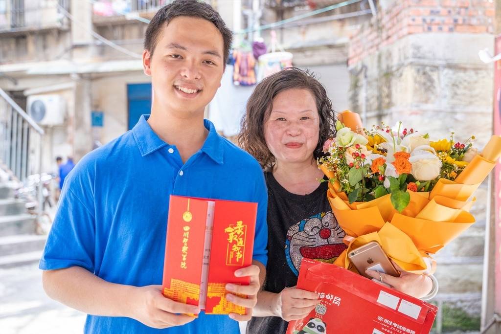 7月14日下午,内江市今年第一封送达的高考录取通知书被签收,由内江邮政分公司投递员余能飞送到了考生陈泓锦手中。相对腼腆的陈泓锦拿到精美的录取通知书,露出了开心的笑容。