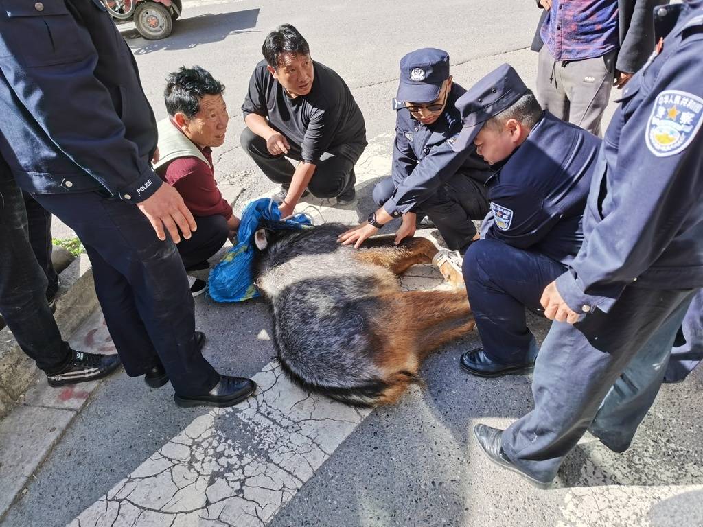 7月14日清晨,甘孜州新龙县公安局森林警察大队接到群众报警称:一头不知名的野生动物从新龙县城绕城大桥跳到自家三层楼房的房顶,不能脱身,请求救助。