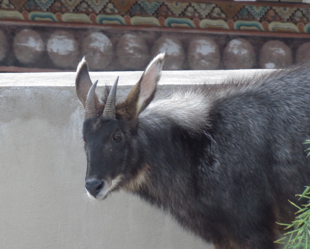 鬣羚也叫明鬃羊,属牛科,典型林栖兽类,是亚洲东南部热带、亚热带地区的典型动物之一,主要活动于海拔1000至4400米针阔混交林、针叶林或多岩石的杂灌林。它的角像鹿不是鹿、蹄像牛不是牛、头像羊不是羊、尾像驴不是驴,人们据此将其与驯鹿、驼鹿和麋鹿一起称为“四不像”,主要分布于甘肃、青海、浙江、安徽、湖北、江西、四川、云南、西藏、福建、广东、广西以及陕南等地,是中国国家二级重点保护动物。