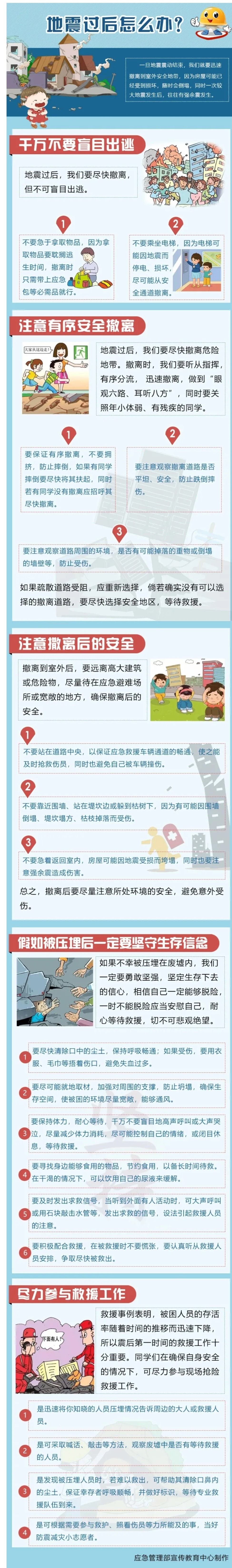 7月15日凌晨,中国地震台网正式测定:07月14日23时36分在四川阿坝州汶川县(北纬30.97度,东经103.37度)发生4.8级地震,震源深度15千米。地震发生后第一时间应该做什么呢?来,四川省应急管理厅告诉你。