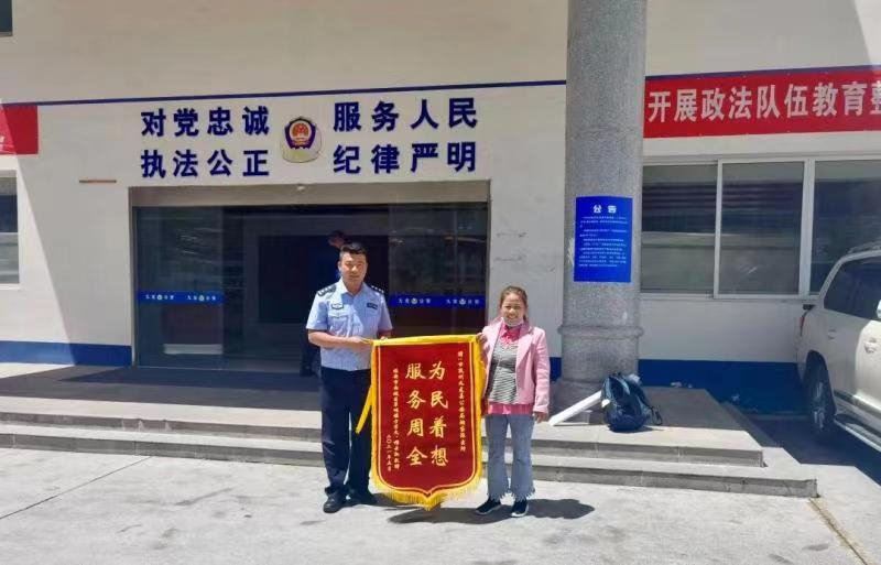 近日,雅安市文某夫妇为甘孜州九龙县公安局烟袋派出所送来“为民着想 服务周全”字样的锦旗,对烟袋派出所全心全意为民服务表示感谢。