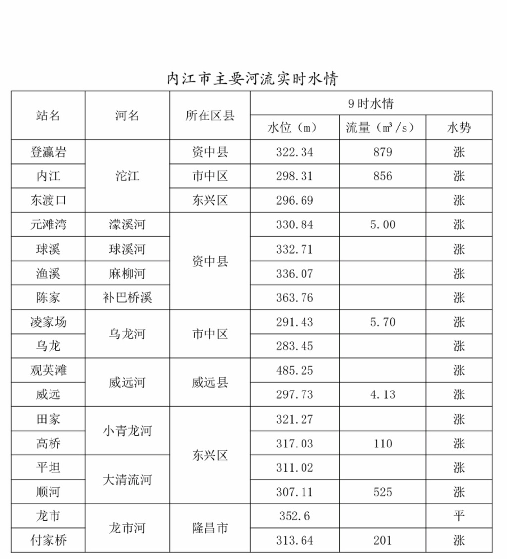 受强降雨影响,内江市域内主要河流均出现涨水过程,截至到16日上午9点,水位仍在持续上涨,预计洪峰在16日下午2点到晚上11点陆续到达。内江水文局提醒相关部门注意局部暴雨引发的区域性暴雨洪水以及山洪、泥石流、滑坡等各种次生灾害,并做好洪水防御准备工作。后续,该局将密切关注天气变化及河道水情变化,及时发布实时水雨情信息和滚动预警预报。