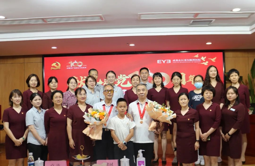 7月15日下午,成都东区爱尔眼科医院开展了一堂生动党课,医院邀请两名荣获“光荣在党50年”纪念章的老前辈——杨世华、谢合友,分享他们对党忠诚、全力为群众服务的故事。成都市锦江区祥和里社区党员代表、医院党员代表及部分青年参加了此次分享会。