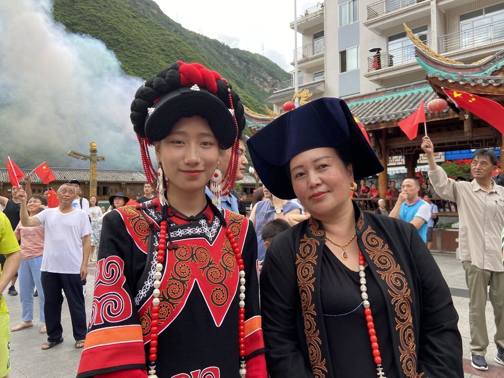 当巨幅五星红旗在泸定桥广场展开,将整场快闪活动推向高潮,来自泸定县沙坝镇的彝族姑娘徐宵莉激动得热泪盈眶,声音格外洪亮,“很高兴和大家一起献歌给党,特别是在泸定桥旁,意义非凡。”