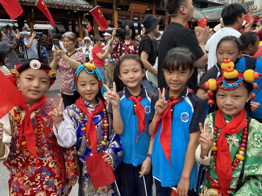 7月16日下午,甘孜州泸定县泸定桥广场人头攒动。尽管阳光炙热,也不能阻挡大家热情。3000余名来自泸定县各乡镇、各行业的干部群众齐聚于此,经过多日精心编排,一场别开生面的快闪活动正热闹上演。
